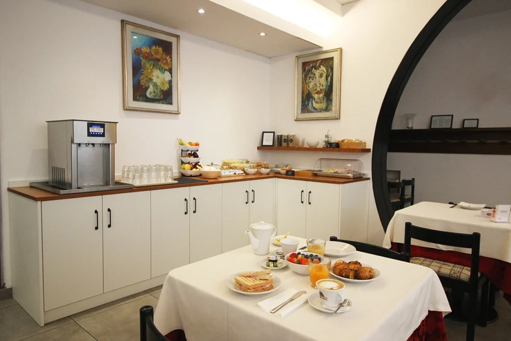 La proposta salata include una selezione di salumi, formaggi e pane fresco, con la possibilità di preparare anche un toast caldo. Per chi preferisce il dolce, non mancano brioches, yogurt, cereali, frutta, fette biscottate, burro e marmellate. A completare l’offerta, bevande calde come caffè, cappuccino, tè e tisane, insieme a una selezione di succhi di frutta. Un momento semplice e piacevole, perfetto per iniziare la giornata con la giusta energia.