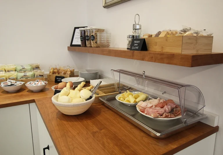 La proposta salata include una selezione di salumi, formaggi e pane fresco, con la possibilità di preparare anche un toast caldo. Per chi preferisce il dolce, non mancano brioches, yogurt, cereali, frutta, fette biscottate, burro e marmellate. A completare l’offerta, bevande calde come caffè, cappuccino, tè e tisane, insieme a una selezione di succhi di frutta. Un momento semplice e piacevole, perfetto per iniziare la giornata con la giusta energia.
